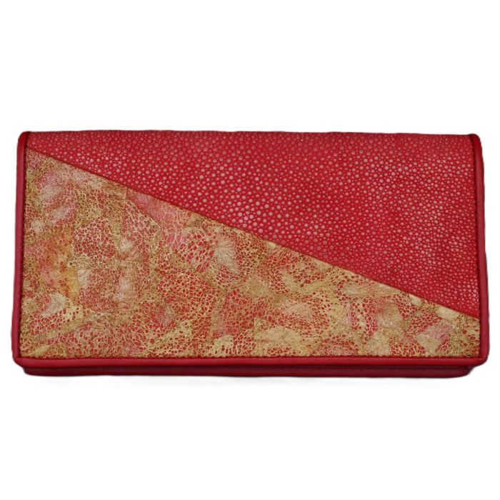 Genuine Stingray Bifold Leather Purse with Gold Cocoon- Light Red