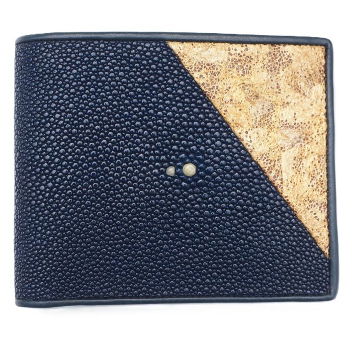 Genuine Stingray Leather Trifold Wallet with Golden Cocoon